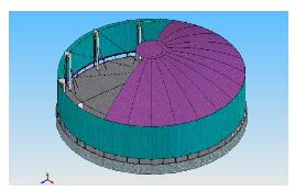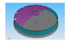 3、立中心傘架,如為拱頂罐安裝頂蓋,頂板立柱處開(kāi)天窗: