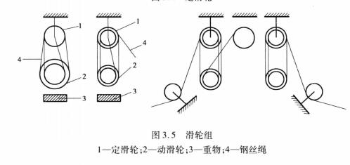 滑輪組由定滑輪和動滑輪組成,并由它們繞過的繩索聯(lián)系為整體,從而達到勝利和改變方向的目的,如圖3.4和圖3.5所示。
