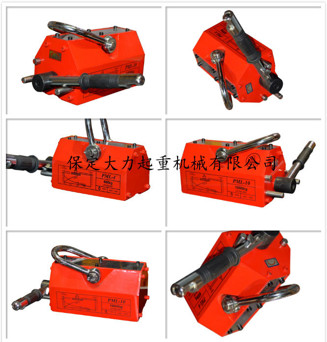 永磁起重器主要的一點(diǎn)不需用電。這種永磁起重器是一種無電源起重設(shè)備。永磁起重器吸力安全系數(shù)×3.5倍,永磁起重器采用高性能稀土永磁一釹鐵硼為磁源,具有不耗電,吸力強(qiáng)、剩磁低、操作輕便、壽命長、安全可靠等特點(diǎn),永磁起重器結(jié)構(gòu)先進(jìn),按照出口標(biāo)準(zhǔn)組織生產(chǎn)。永磁起重器廣泛用于機(jī)械工業(yè)、模具制造業(yè)、倉庫和交通運(yùn)輸?shù)炔块T搬運(yùn)鋼板、鋼錠等導(dǎo)磁性物體。 永磁吸盤適用于搬運(yùn)鋼板、鐵塊及圓柱鐵材。如機(jī)械零件、沖床模具及各類鋼鐵材料。
