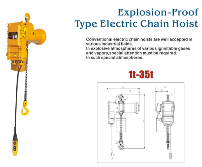 防爆環(huán)鏈電動葫蘆采用了變速器、吊架和電動機三大部分軸向組裝一體的先進結構,這種結構不但維修方便,而且具有良好的封閉作用,尤其更適用于室外及灰塵較多的場合。該防爆葫蘆的動力是采用我國新型的盤式制動電動機,該電動具有體積小和制動可靠、靈敏等優(yōu)點,強度耐磨損的鋼制鏈條提升穩(wěn)定安全,是理想的小型起重工具。